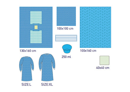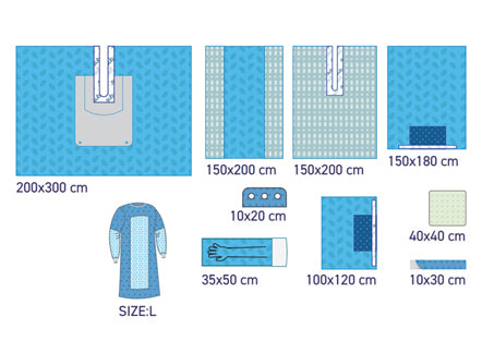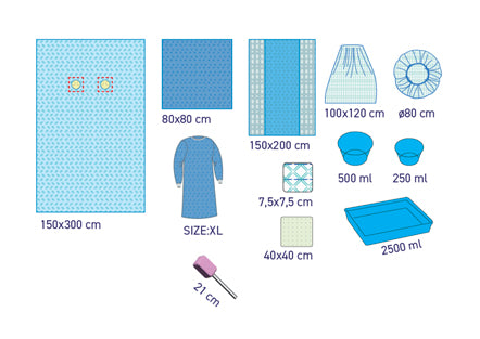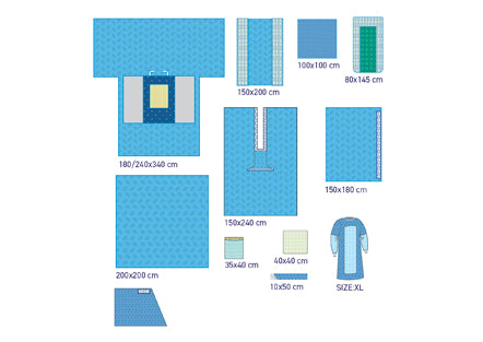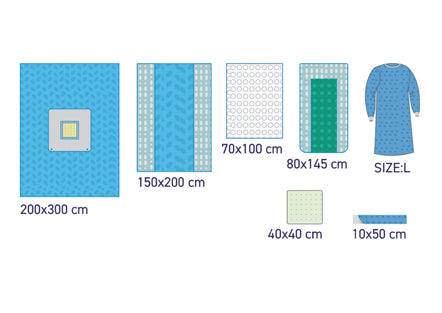 The Universal Kit provides essential drapes and towels for a sterile and efficient surgical setup. Its versatile components support a wide range of procedures while streamlining preparation.